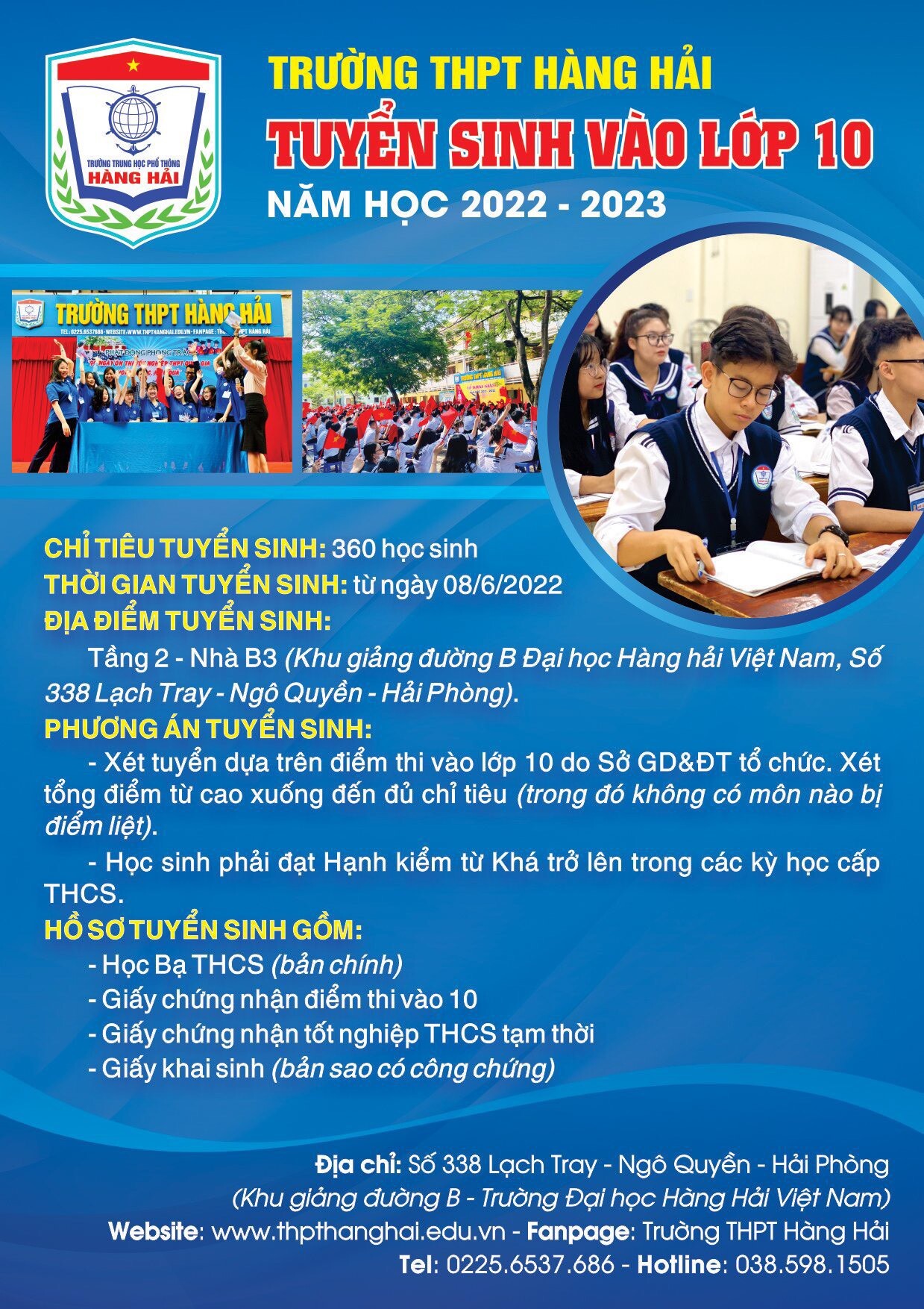 TUYỂN SINH VÀO LỚP 10 TRƯỜNG THPT HÀNG HẢI